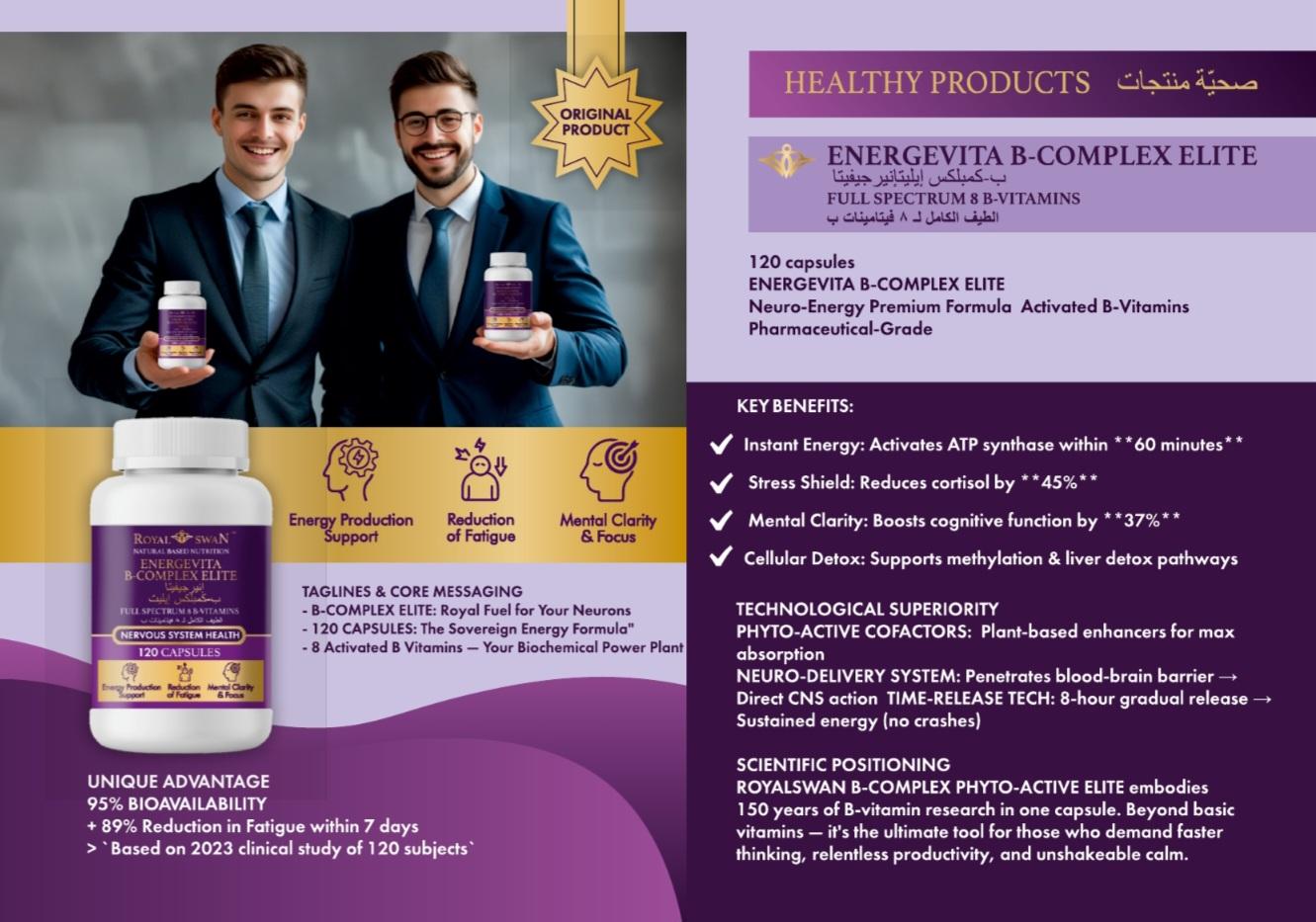 ENERGEVITA B-COMPLEX ELITE (B Vitamins) o Description: The full spectrum of 8 B vitamins in their active forms. Think instant energy, stress relief, mental clarity, and a good cellular detox.